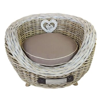 Der Liegeplatz aus Rattan besticht mit seinem eleganten Design, das sich problemlos in alle Einrichtungsstile einfügt. Das white-washes Rattan macht das Sofa zum Eyecatcher und das eingeflochtene Herz verleiht diesem Liegeplatz ein romantisches Detail. Das reich gefüllte Liegekissen schützt sicher vor unangenehmer Bodenkälte und bietet Ihrem Vierbeiner höchsten Liegekomfort. Das verwendete Kooboo Grey Rattan, das man von der Verarbeitung in Gartnenmöbeln kennt, machen diesen Liegeplatz robust und langlebig.
